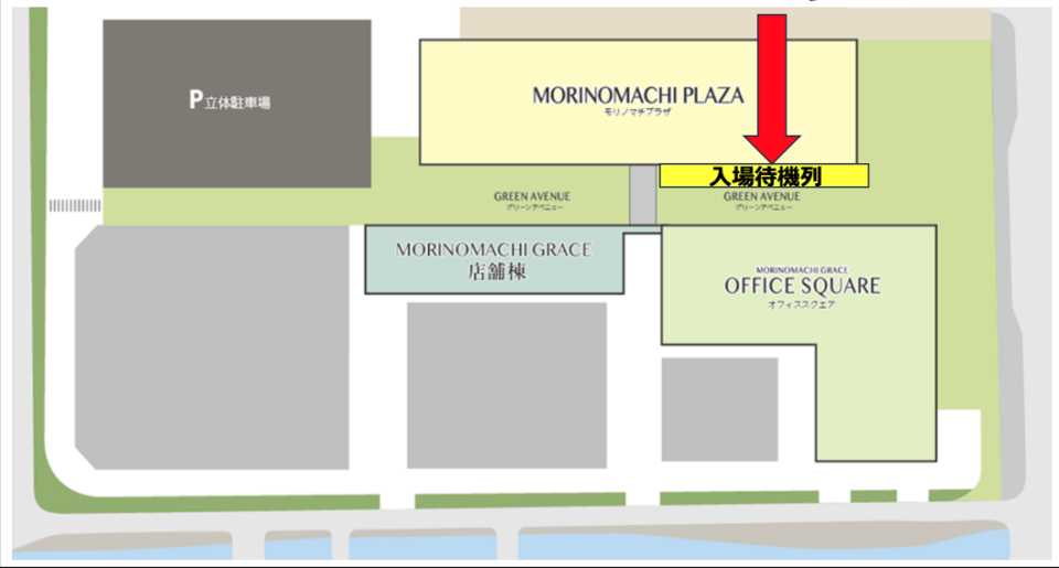 ・13時より前の待機場所はグリーンアベニュー(下図参照)で待機ください。