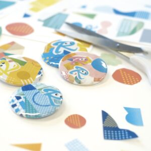 シールを貼って作るオリジナルの缶バッジワークショップ。
